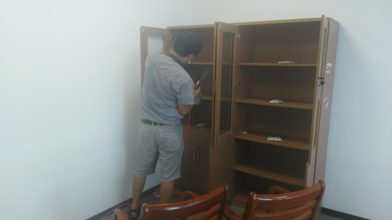 針對(duì)其結(jié)構(gòu)特點(diǎn)及污染情況,我公司技術(shù)及施工人員經(jīng)過認(rèn)真考察,制訂了合格的施工方案,針對(duì)易散發(fā)甲醛等有害物質(zhì)的污染源,重點(diǎn)治理,對(duì)重新粉刷的墻面使用我公司研發(fā)的利純納米光觸媒進(jìn)行甲醛清除,這些地方光照量較充足,便于光觸媒對(duì)甲醛的分解,對(duì)于刷漆的辦公家具、書桌、儲(chǔ)物柜、木門、地板等采用甲醛清除劑進(jìn)行處理,針對(duì)不同污染物,做分別處理。經(jīng)過我公司重點(diǎn)治理,一周后復(fù)查結(jié)果各種有害物質(zhì)含量均已達(dá)到國(guó)家標(biāo)準(zhǔn)以內(nèi),各項(xiàng)指數(shù)均達(dá)標(biāo)。客戶員工感覺氣味明顯消除,為業(yè)主清理甲醛,還顧客一個(gè)安全,健康的生活環(huán)境是我們?nèi)w工作人員的責(zé)任,下面為施工現(xiàn)場(chǎng)照片: